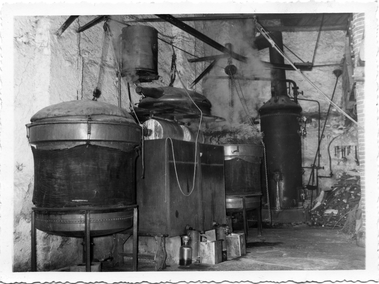 La prima distilleria fissa si trovava nel centro del paese e qui le squadre di raccoglitori conferivano il fiore colto sulle montagne prese in appalto nel comune di Demonte. Dai paesi più lontani il fiore veniva trasportato su carri trainati da muli o venivano allestite distillerie termporanee.
